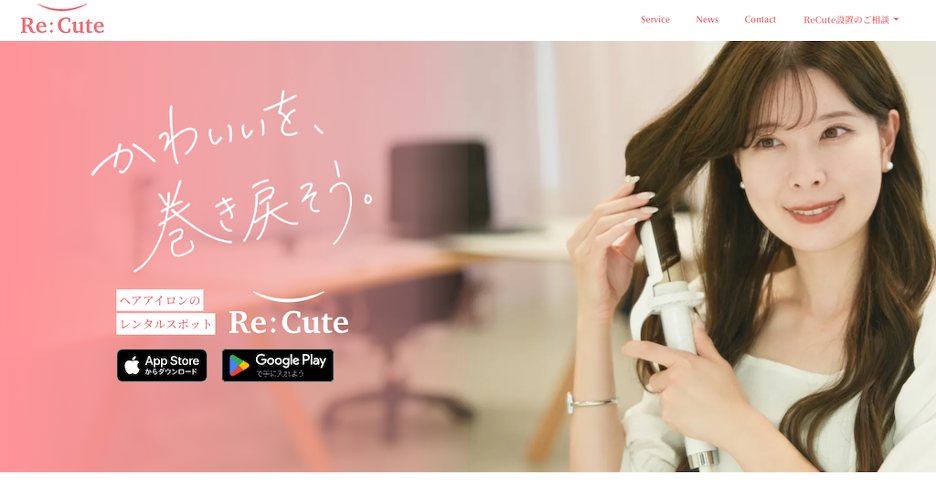 ReCute は、商業施設の女性用化粧室にヘアアイロンのレンタルスポットを設置するサービスを展開している。